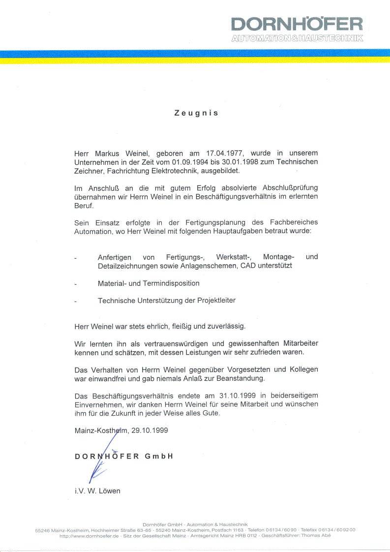 Arbeitszeugnis Dornhöfer GmbH [klicken zum vergrößern]