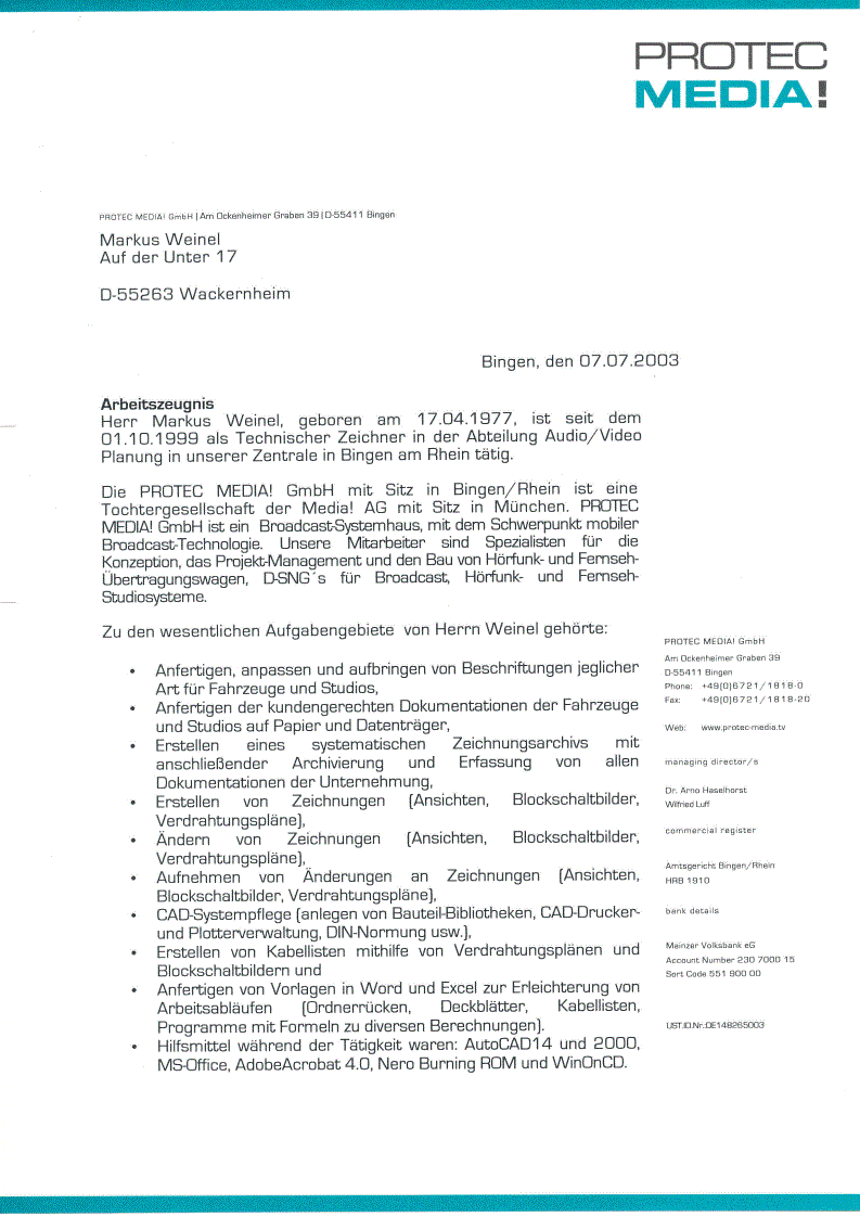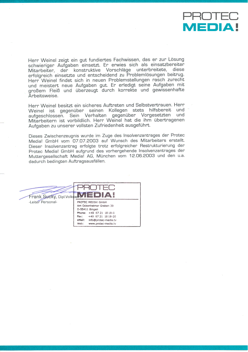 Arbeitszeugnis Protec GmbH [klicken zum vergrößern]