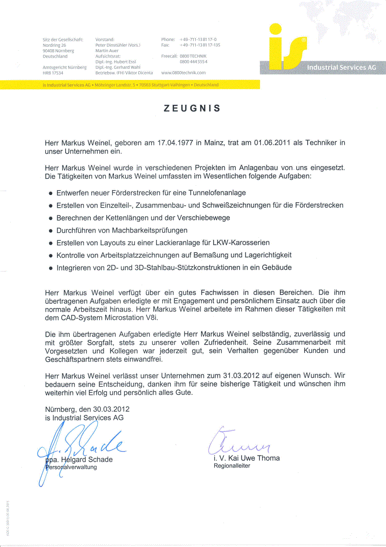 Arbeitszeugnis Industrial Services AG [klicken zum vergrößern]