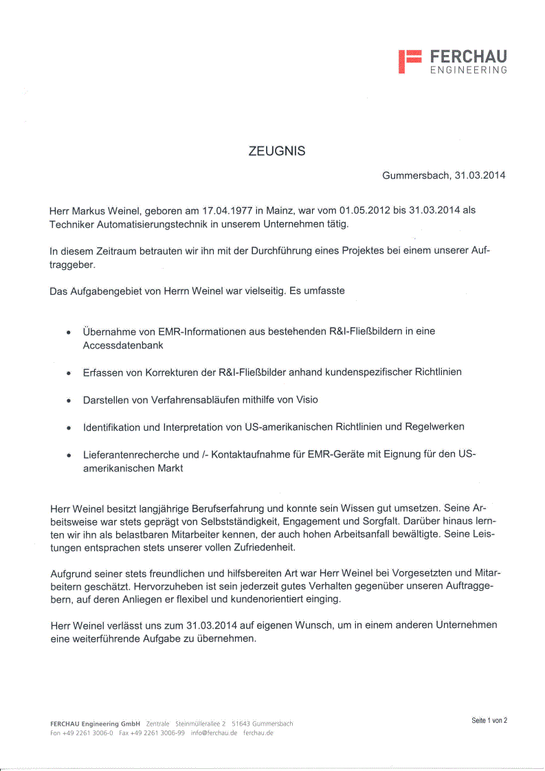Arbeitszeugnis Ferchau Engineering GmbH [klicken zum vergrößern]